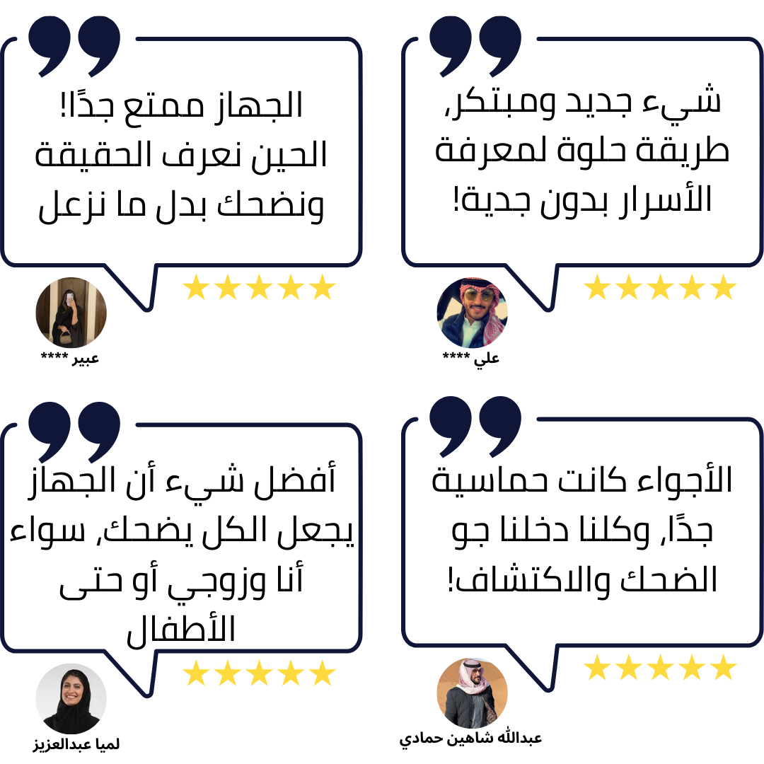 احصل على أفضل الأوقات الممتعة من اللعب والتميز مع الجهاز المتطور والفعال في كشف الكذب ، لقضاء أجمل الأوقات المميزة مع الأصدقاء في التحدث بطلاقة وصراحة ، احصل عليه الآن من خلال متجرنا بأعلي جودة وخامات مميزة