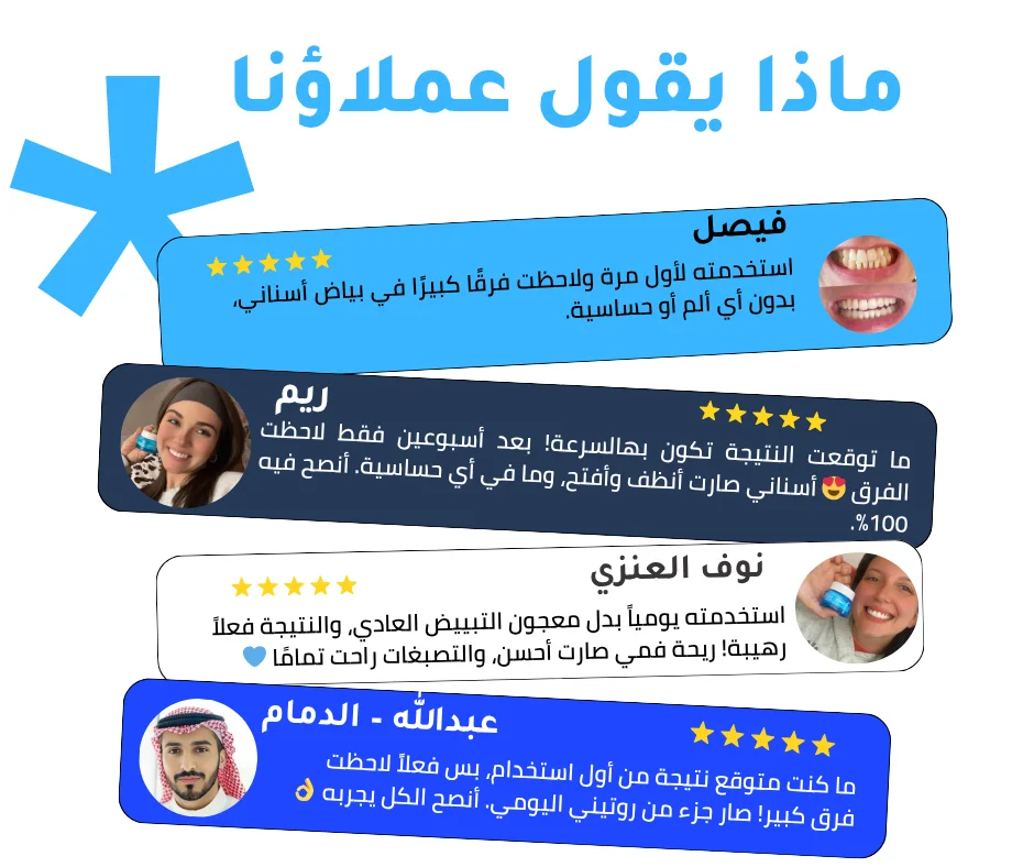 ✔️ أكثر من مليون ابتسامة سعودية وخليجية تثق في نتائجه معتمد من أطباء الأسنان ومُجَرّب من الآلاف في السعودية والخليج