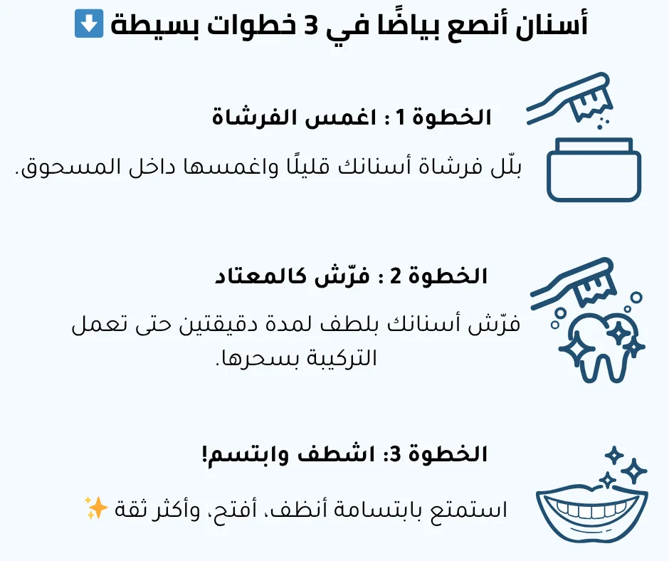 ✔️ يبيّض أسنانك من أول استخدام ويزيل آثار القهوة، الشاي، التدخين وحتى التقدّم بالعمر
