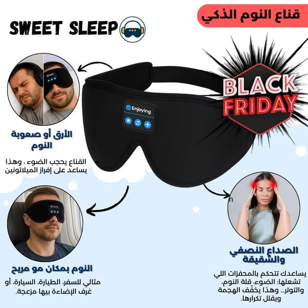 🎧 سماعات رقيقة مدمجة - ما تحس فيها حتى لو نمت على جنبك 😴 قناع ثلاثي الأبعاد - ظلام كامل بدون ضغط على عيونك 📱 بلوتوث لاسلكي - وصله بتلفونك وسمع أي شي تبيه 🔋 بطارية 8+ ساعات - تكفيك طول الليل 🧼 قماش ناعم قابل للغسيل - نظيف ومريح دائماً
